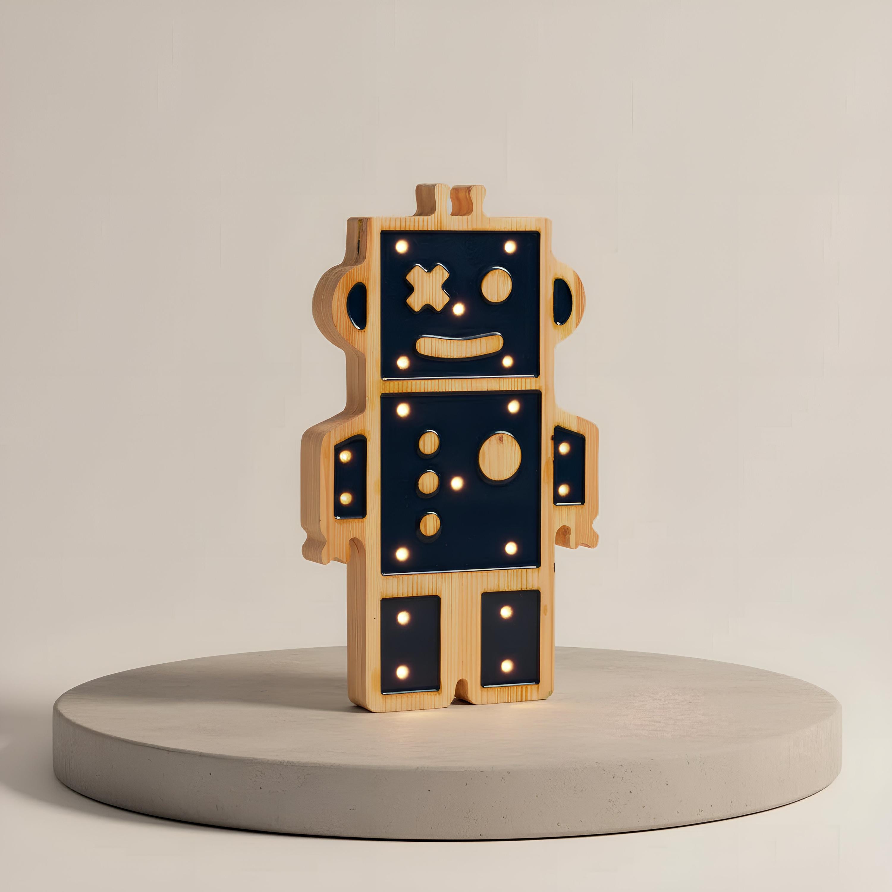 Spark imagination and creativity with this charming Wooden Robot Night Light, specially handcrafted to bring fun and warmth into children's bedrooms, nurseries, or playrooms. Featuring bright LED lights and a playful robot design, it’s the perfect decor piece for little innovators and dreamers!